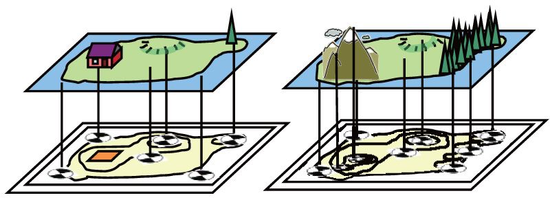 航攝飛行過(guò)程中,航線設(shè)計(jì)時(shí)主要采用的是地形圖的高程信息,未引入人為構(gòu)建的獨(dú)立地物、建筑物等高度,若測(cè)區(qū)出現(xiàn)高度高于相對(duì)航高的獨(dú)立地物或建筑物,很容易出現(xiàn)撞機(jī)事故,引發(fā)飛機(jī)墜毀,嚴(yán)重情況下引起人身財(cái)產(chǎn)損失。所以將建筑物的高度引入航線設(shè)計(jì)中很有必要。