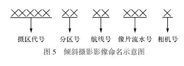 傾斜航空影像的數(shù)據(jù)整理與《數(shù)字航空攝影規(guī)范第1部分:框幅式數(shù)字航空攝影》中7.1中關(guān)于文檔資料整理的要求有所不同,傾斜攝影有多個(gè)相機(jī),因此在相機(jī)相對(duì)位置關(guān)系、像片數(shù)據(jù)編號(hào)、文件存儲(chǔ)及激光打印輸出等部分存在差異。