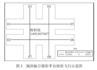 此外,采用其他傾斜航攝儀執(zhí)行時(shí),若攝區(qū)航向和旁向重疊均不小于80%,可挑選2~3條正常航線的航片作為檢校場(chǎng)飛行航線。