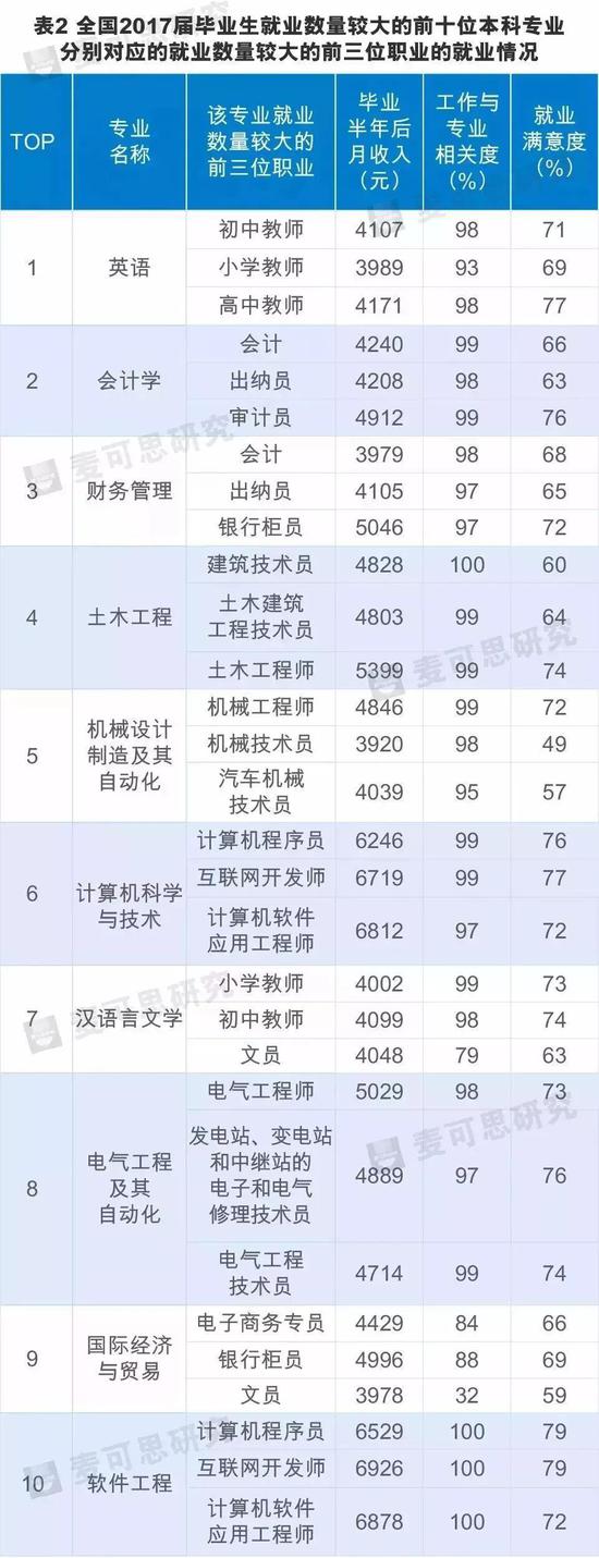軟件工程專業(yè)繼就業(yè)率、月收入均為最高外,就業(yè)滿意度也最高(75%)。