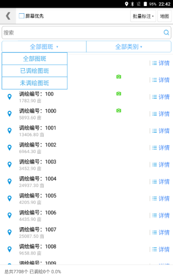 答:在調(diào)繪圖斑過后,外業(yè)調(diào)繪軟件自動將已調(diào)繪圖斑和未調(diào)繪的圖斑用顏色進行區(qū)分,同時進行分類排布。已調(diào)繪的會從紅色變?yōu)辄S色,還會加上旗桿標(biāo)志進行提示,讓大家外業(yè)作業(yè)一目了然,絕不遺漏。