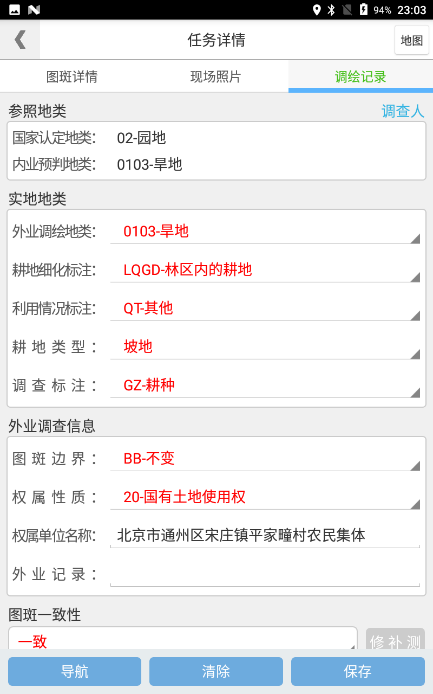 根據(jù)三調(diào)性質(zhì)設(shè)計,點擊圖斑屬性,在外業(yè)調(diào)繪選擇項目下,只有地類判別一個是必需要選擇的。其他的完全根據(jù)自己的需求進行選擇,不選擇絕不影響后面的操作。舉證直接點擊現(xiàn)場照片功能,按照界面提示對應(yīng)拍照即可。外業(yè)操作學(xué)習(xí)一目了然。