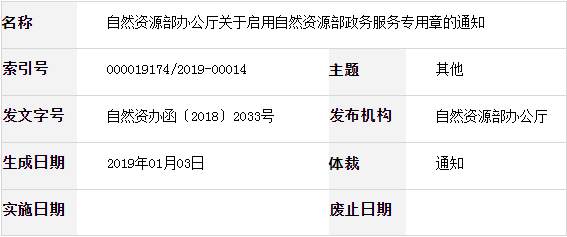 地理信息:自然資源部辦公廳關(guān)于啟用自然資源部政務(wù)服務(wù)專用章的通知