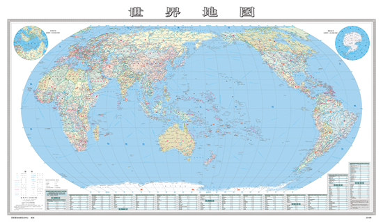該地圖幅面尺寸為155cm*90cm,采用最新的地理信息數(shù)據(jù),表示了世界各國(地區(qū))國家級政區(qū)、首都首府和重要城市、主要河流、山峰山脈、主要群島和島嶼等要素。
