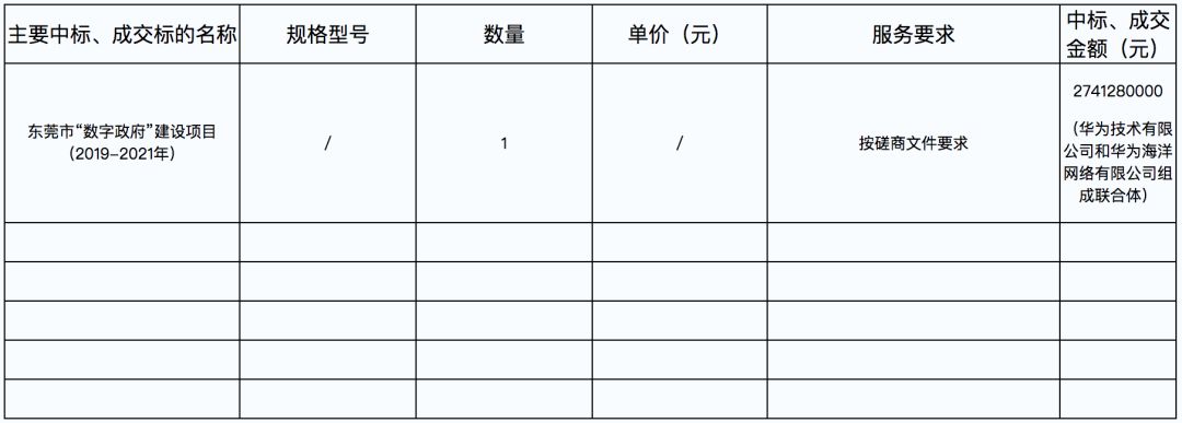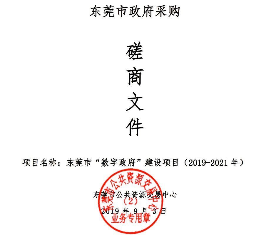 2019年9月3日,《東莞市“數(shù)字政府”建設項目(2019-2021年)》采購內(nèi)容信息系統(tǒng)集成實施服務,預算金額 27.42 億元,采購方式為競爭性磋商。